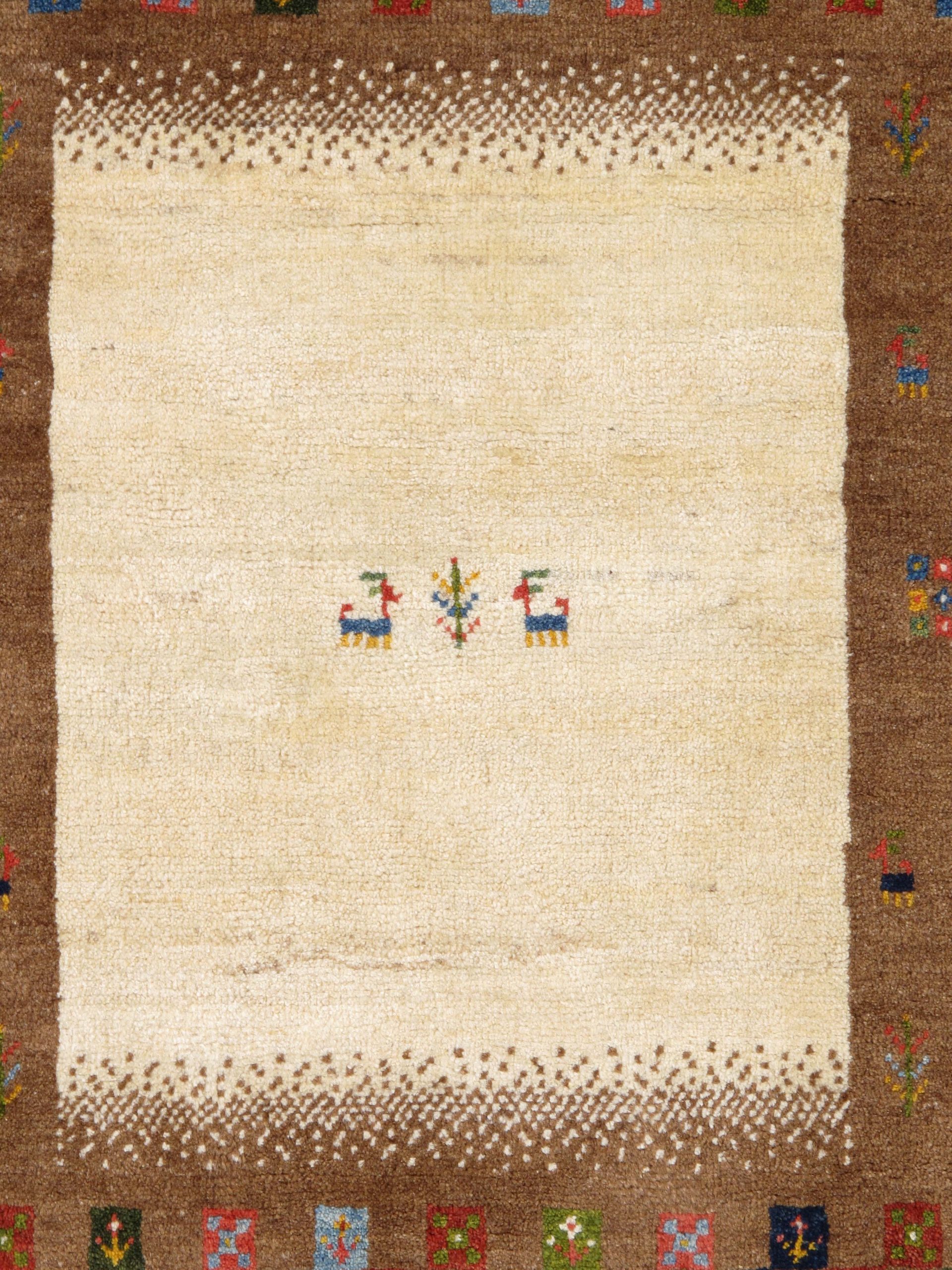 Bring warmth and cultural charm into your home with this Handmade Beige and Brown Persian Style Rug, featuring a detailed tribal border enriched with colorful Gabbeh motifs. Gabbeh rugs are traditionally woven from pure wool, giving them a cozy, organic feel and long-lasting durability. Fully hand-knotted, this piece blends earthy neutrals with playful geometric and animal-inspired accents that add depth and character to any room. Its inviting design makes it a beautiful accent for living rooms, bedrooms, entryways, or creative spaces, offering the artisan warmth of Persian style rugs. This rug is also ideal for anyone seeking a beige Persian design rug, brown Persian design rug, or a unique Persian style area rug with lively, traditional personality.