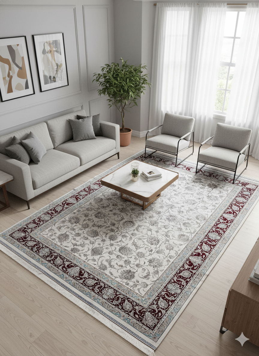 Pattern: Shah Abbasi – a royal Persian design known for symmetrical floral medallions and classical elegance