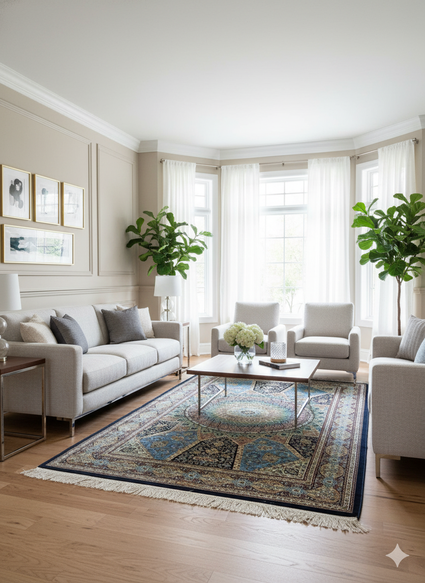 Pattern: Elham, a traditional Persian design with intricate medallion and floral motifs
