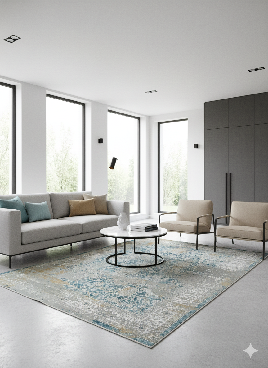 Elevate your space with the timeless elegance of this blue persian rug, a luxurious piece that embodies Persian artistry and craftsmanship. Measuring 7 x 9 (200cm x 290cm), this exquisite rug is hand-finished by skilled artisans, showcasing meticulous attention to detail in its intricate Harmony Pattern design. The harmonious blend of blue and beige tones creates a serene and sophisticated look, making it perfect for adding a touch of heritage to your living room, bedroom, or study. Crafted with premium bamboo silk, this blue persian rug blends timeless design with modern appeal, offering a stunning addition to your décor. Bring luxury home—order now from Afra Rugs!