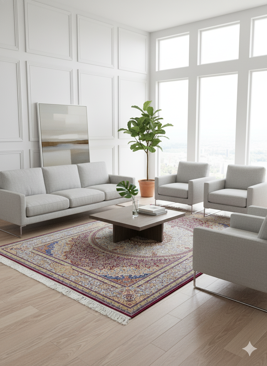 Pattern: Golestan Pattern, featuring a radiant medallion design inspired by Persian gardens