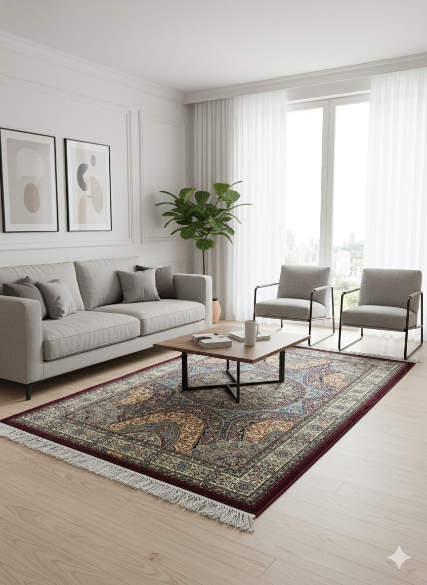 Pattern: Elham, a traditional Persian design with intricate medallion and floral motifs